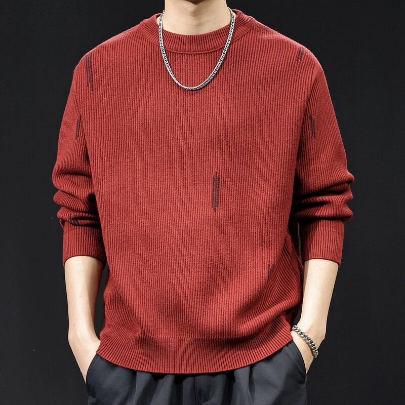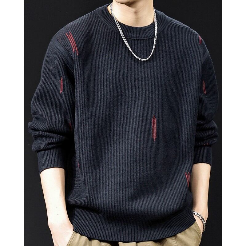ラウンドネックカジュアルニットトップス D0008