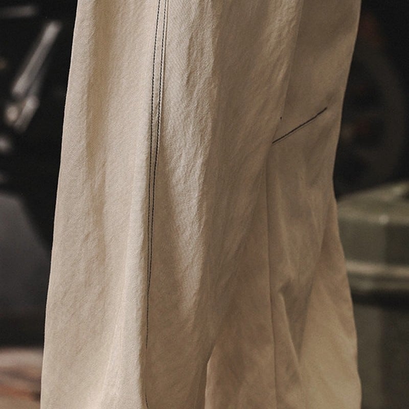 ウォッシュ加工ワイドレッグロングパンツ D0156