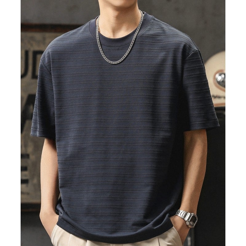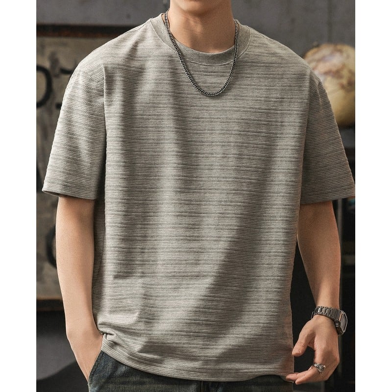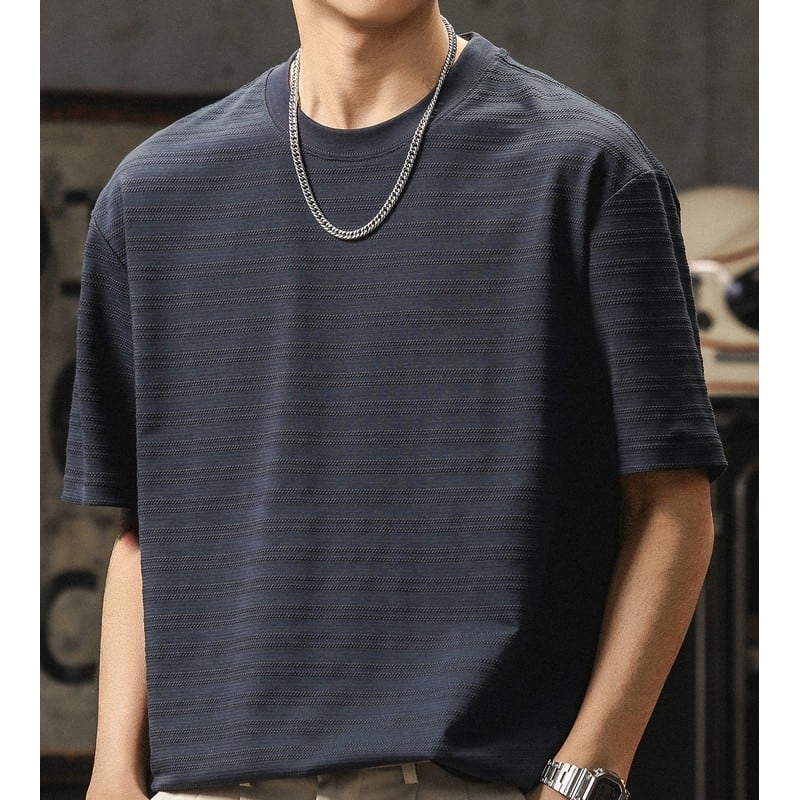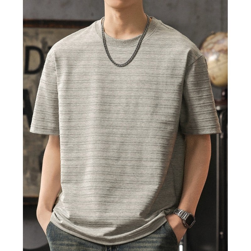 アメリカンレトロストライプ柄ラウンドネック半袖Tシャツ D0118