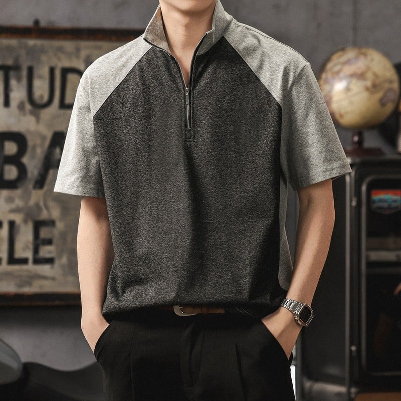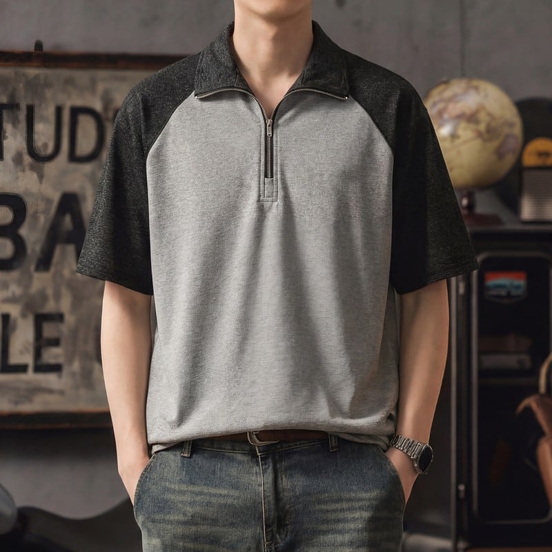 ハーフジップ 半袖 ニットポロシャツ D0121