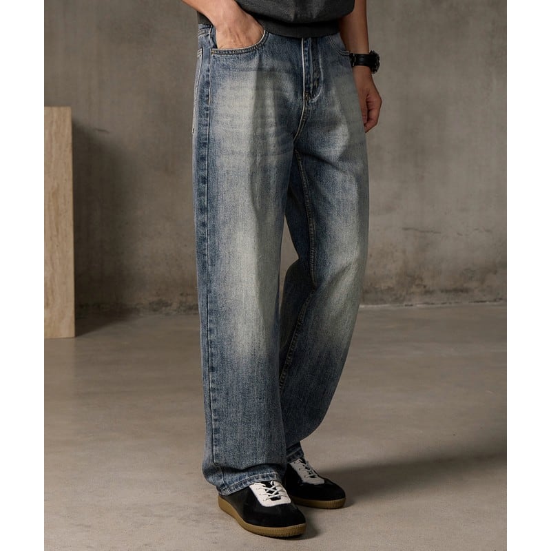 レトロウォッシュ加工ストレートジーンズパンツ D0161