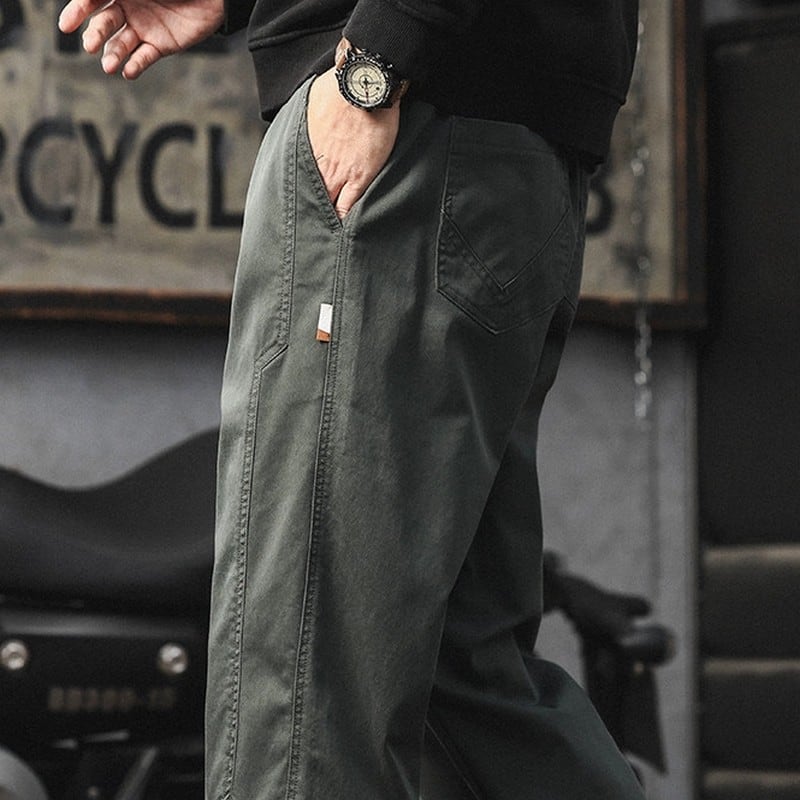 ウォッシュ加工マイクロテーパードロングカジュアルパンツ D0168